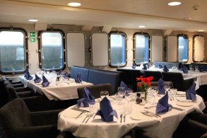 All cabins offer lower berths (one queen-size bed in the superior cabins and two single beds in the twin cabins), except for the 4 quadruple cabins (for 4 persons in 2x upper and lower beds), and 2 triple cabins (1 bunk bed plus 1 lower bed). The ship offers a restaurant/lecture room on deck 3 and a spacious observation lounge with bar on deck 5 with large windows that give a full panoramic view. MV Plancius has large open spaces on deck (with full walk-around options on deck 3), giving outstanding opportunities to enjoy the scenery and wildlife. Furthermore she is equipped with 10 Mark V zodiacs, including 40 HP 4-stroke outboard engines and 2 gangways on the starboard side, guaranteeing a speedy zodiac operation. MV Plancius is not a luxurious vessel, but will be comfortable and nicely decorated.